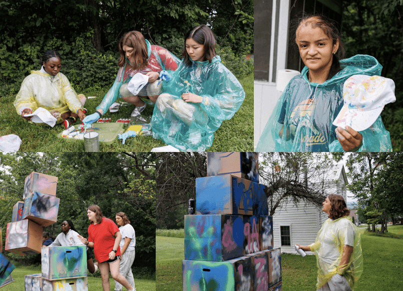And the 9A girls channeled their inner street artists—spray-painting a camp version of the Berlin Wall (to knock over!) and designing neon hats.